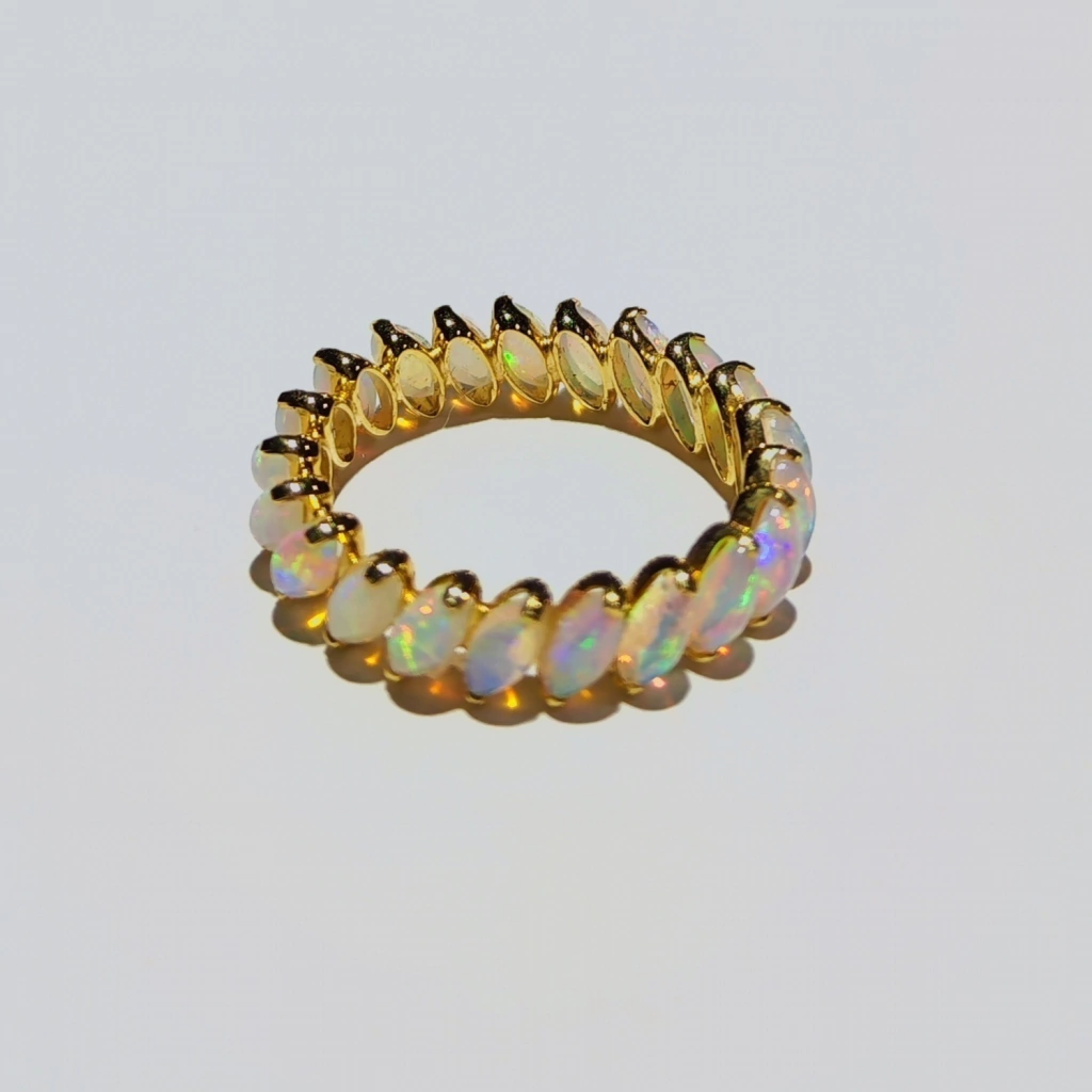 Em ouro amarelo 18k com opalas navete 5x3mm.