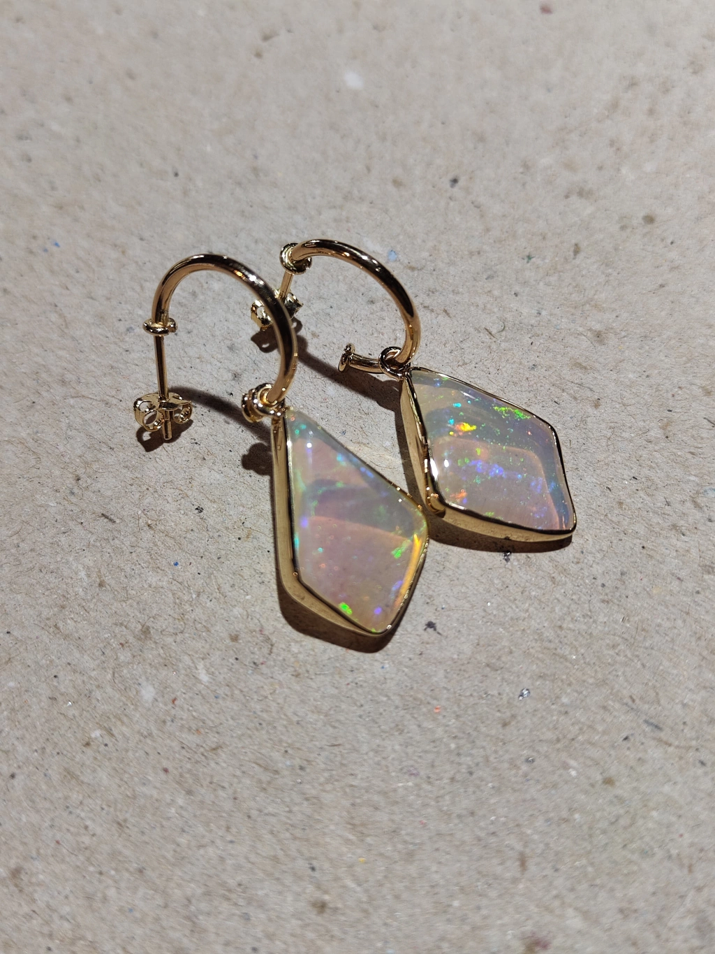 Em ouro amarelo 18k com opala tipo extra forma orgânica 18mm.